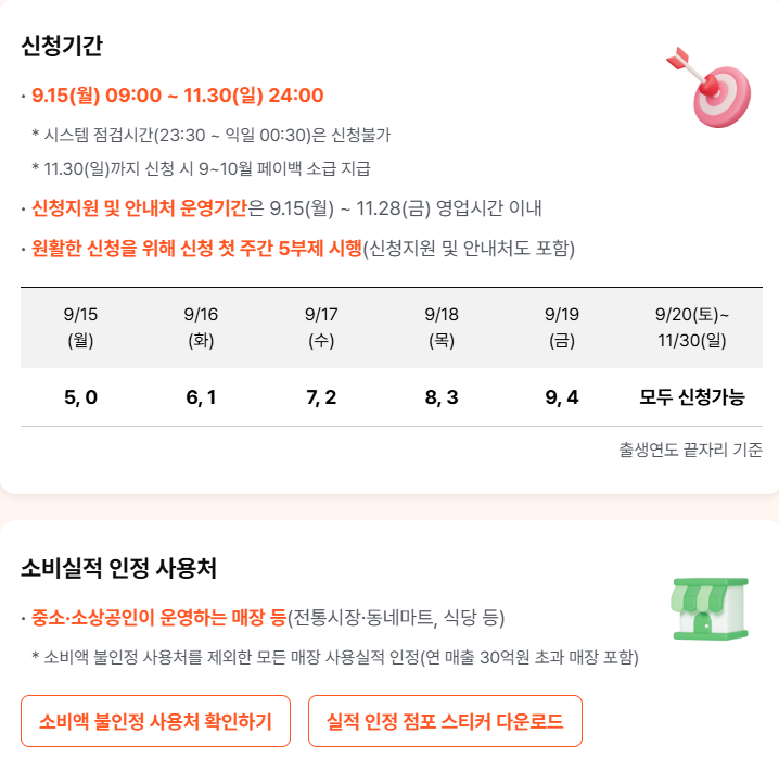 9월 소비분 → 10월 15일 시작 (약 2일 내 지급)