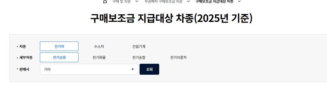 ✔️ 무공해차 통합누리집에서 차종별 보조금 확인